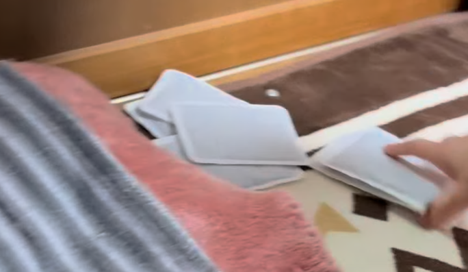 回収したカイロは後程ベランダ部屋の保温の為に使用するので、ベランダ部屋近くの床に置いておくと忘れずに使用できます。