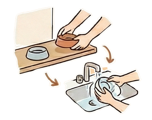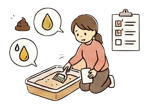 - 汚れたトイレシート毛布などは片付け、新しいものに取り換える